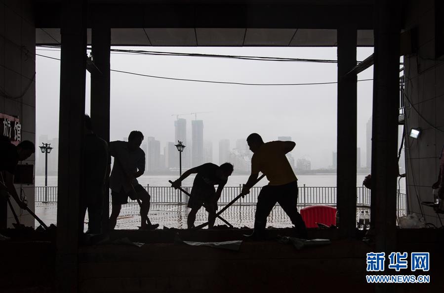 7月6日,工作人员在武汉龙王庙封堵闸口。新华社记者 肖艺九 摄