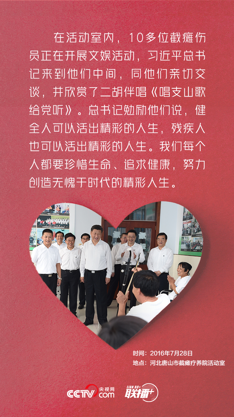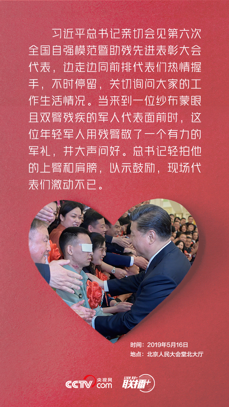 一直以来,习近平总书记始终格外关心残疾人这个特殊群体,多次走到他们身边,询问工作、学习和生活等情况,勉励大家活出精彩人生。温暖的举动,亲切的话语,浸润了广大残疾人的心田。