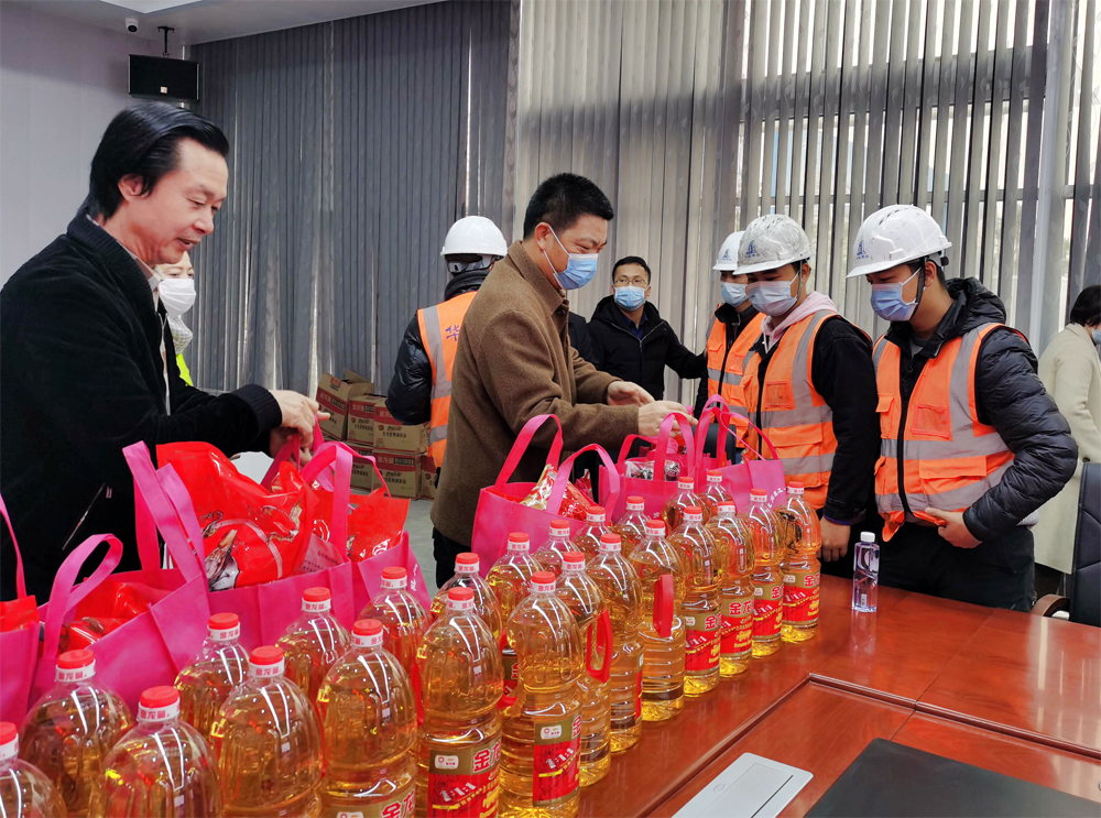 随后,慰问组为项目部一线职工送上春节慰问品,鼓励职工们继续坚守岗位、努力工作,并提前祝愿大家度过一个欢乐、祥和、平安的节日。职工们接过慰问品,纷纷表示非常感谢上级党委、工会、协会的关心,将会为建造精品工程、创造更加优美的城乡环境做出自己的积极贡献。