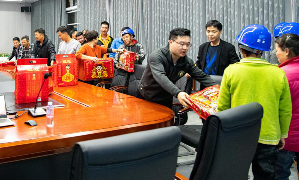 项目部里,集团党员同志们送来节日问候、祝福和新春大礼包,使就地过年的一线建设者们在这个特殊的新年里感受到更多的温暖。他们亲切交流、送上祝愿,红红火火的大礼包让项目部里充满着欢乐详和的年味,建设者们脸上洋溢着幸福的欢笑。