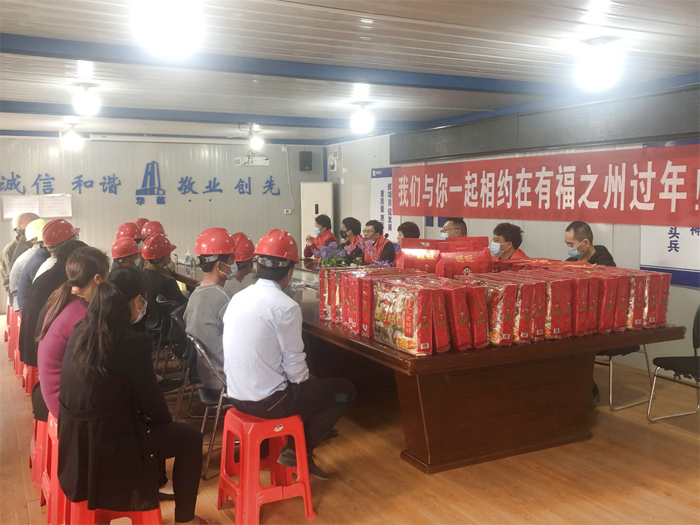 新春佳节来临之际,为了让留榕留岗建设者度过一个温暖欢乐的牛年春节,华航集团党支部、工会联合总部相关职能部门积极响应上级主管部门号召,在长乐三馆三中心项目部、福泉高速公路连接线拓宽改造工程A段第2标段项目部开展“华航与你相约有福之州一起过年”迎新春慰问活动,让一线建设者们在浓厚的春节氛围里就地过年。