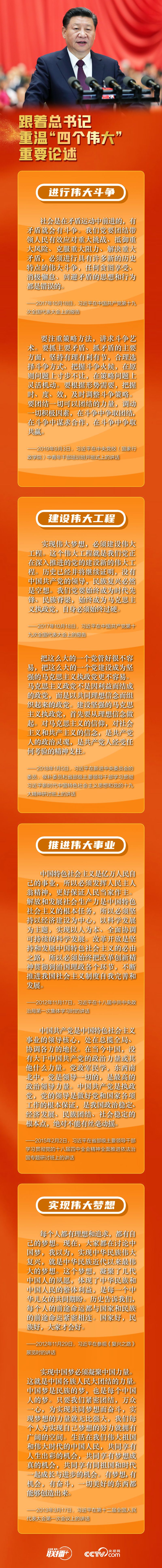 “四个伟大”是对我国改革开放和社会主义现代化建设实践经验的根本总结,是党的十八大以来,以习近平同志为核心的党中央治国理政的总体框架和推进理论创新的实践基础,是制定中国特色社会主义发展新阶段行动纲领的基本遵循。央视网《联播+》特梳理总书记关于“四个伟大”的重要论述,与您一起学习。