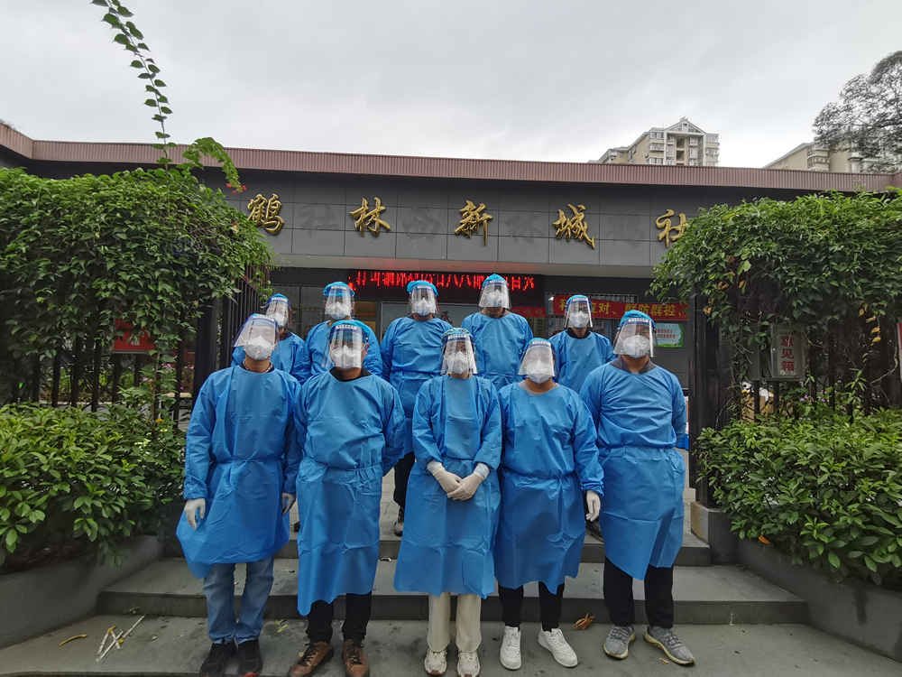 福建华航建设集团志愿服务队增援的鹤林西社区小区中部分为老旧小区,小区设施较为简陋、老年人和出租户较多,志愿者们主动亮身份、当先锋,与医护人员、社区工作人员并肩作战,克服困难、耐心引导,协助开展小区进出安全检查、核酸检测现场秩序维护与政策宣传等工作。福州市城乡建设局党组成员、四级调研员林典国在抗疫现场检查工作、看望志愿者们,他肯定福建华航建设集团的志愿者们积极抗疫,勇敢作为,并叮嘱他们要做好自身防疫保护措施,严格落实抗疫工作。
