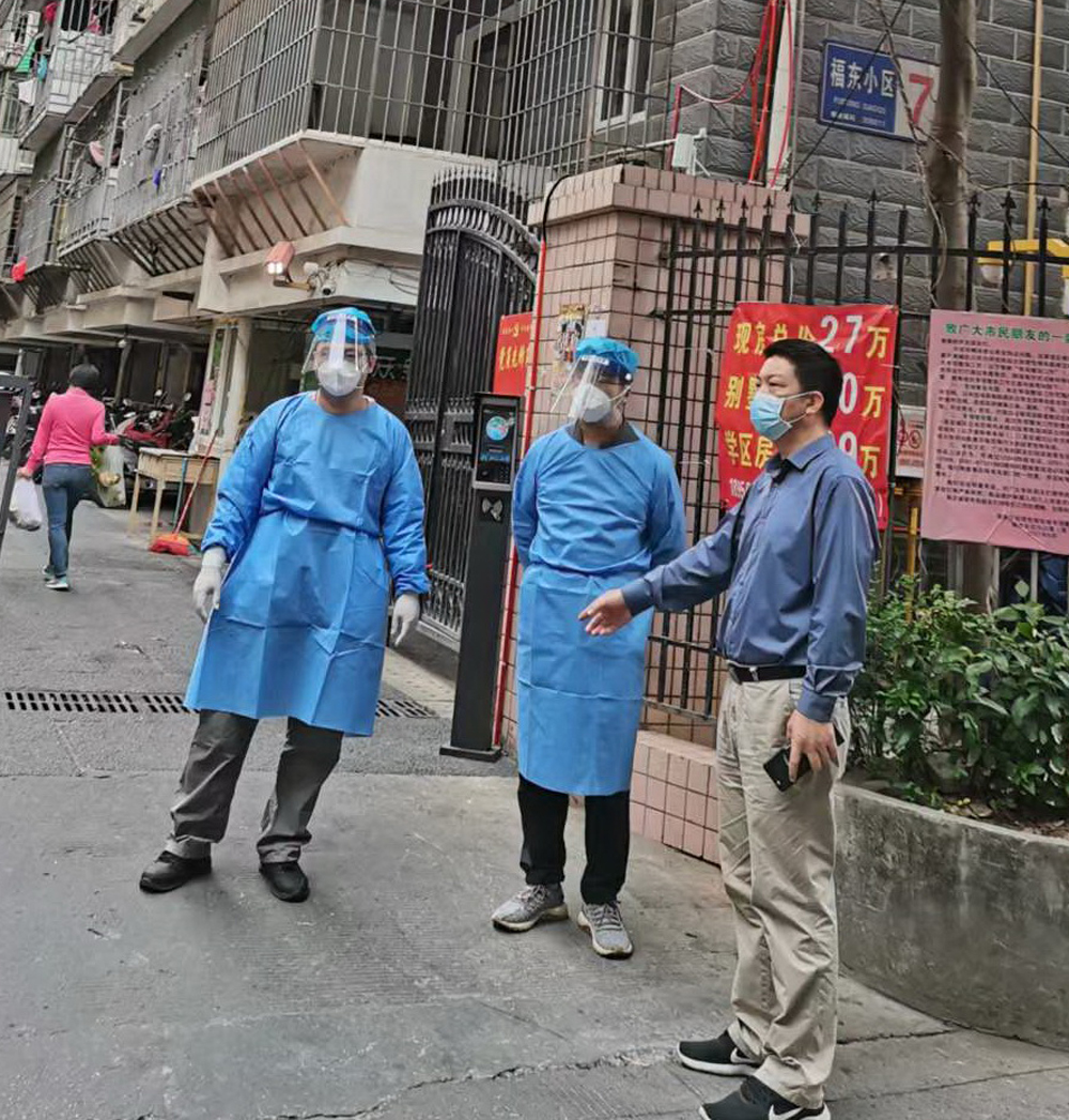 [林典国在抗疫现场检查工作、看望志愿者们]