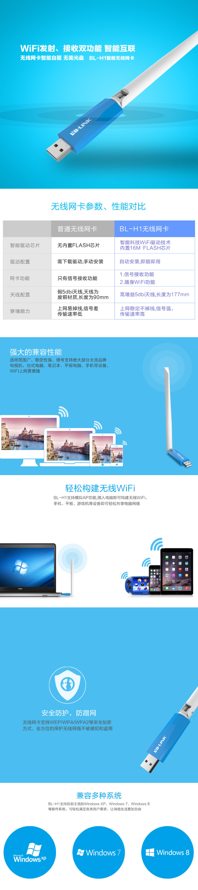 必联 BL-H1 150M 高增益无线 USB 网卡