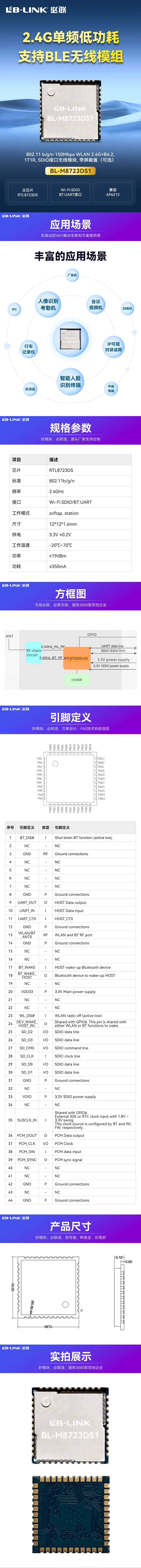1T1R 802.11b/g/n WiFi+BT4.2模组