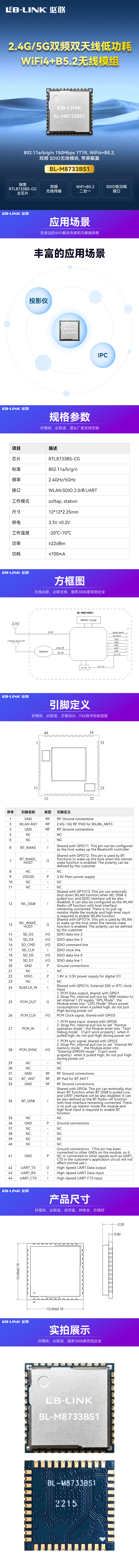 1T1R 802.11a/b/g/n WiFi+B5.2模组
