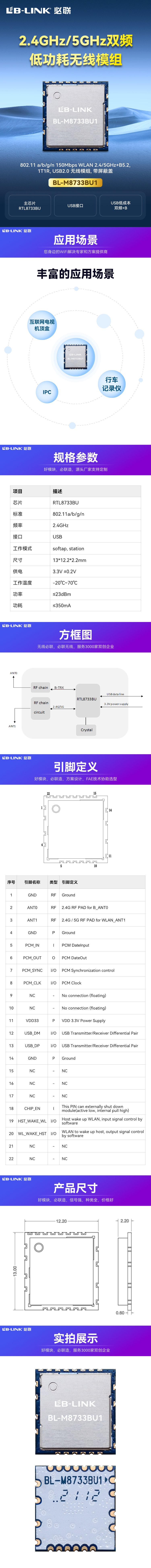 1T1R 802.11a/b/g/n WiFi+B5.2模组