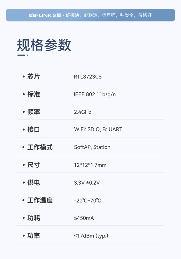 1T1R 802.11b/g/n WiFi+B4.1模组
