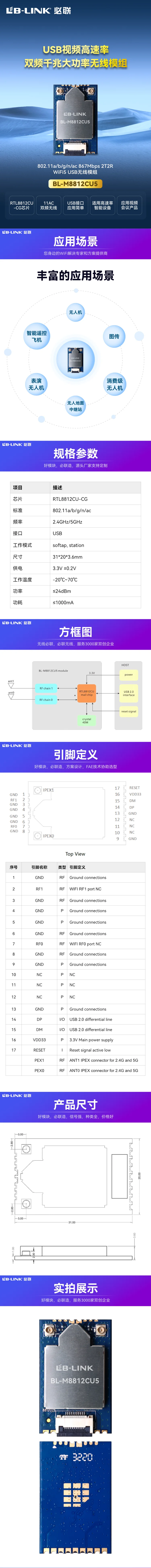 必联 BL-M8812CU5 WIFI模组