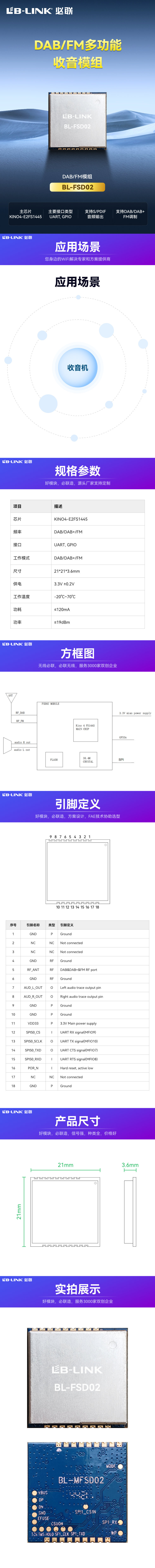 收音机专用 DAB/FM 模组(BL-FSD02)
