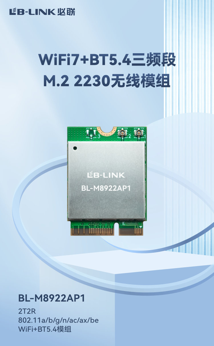 2T2R 802.11a/b/g/n/ac/ax/be WiFi+BT5.4模组