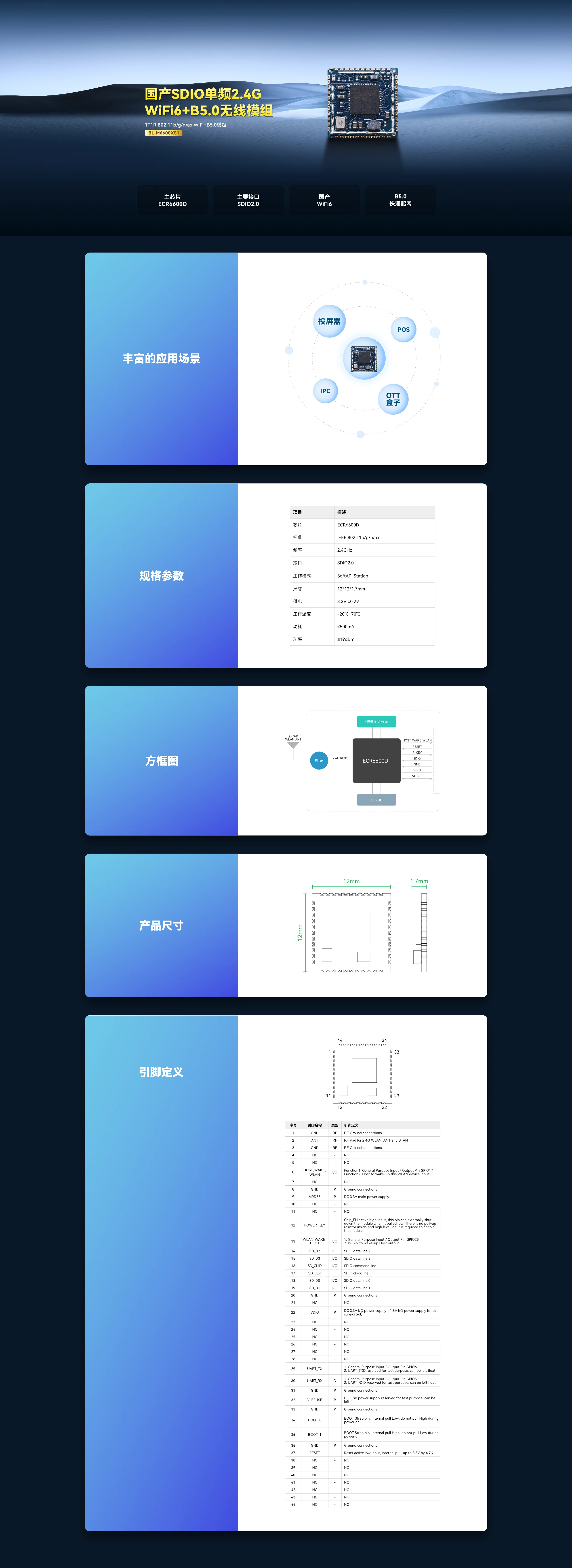 ECR6600D 芯片 WiFi+B5.0 模组
