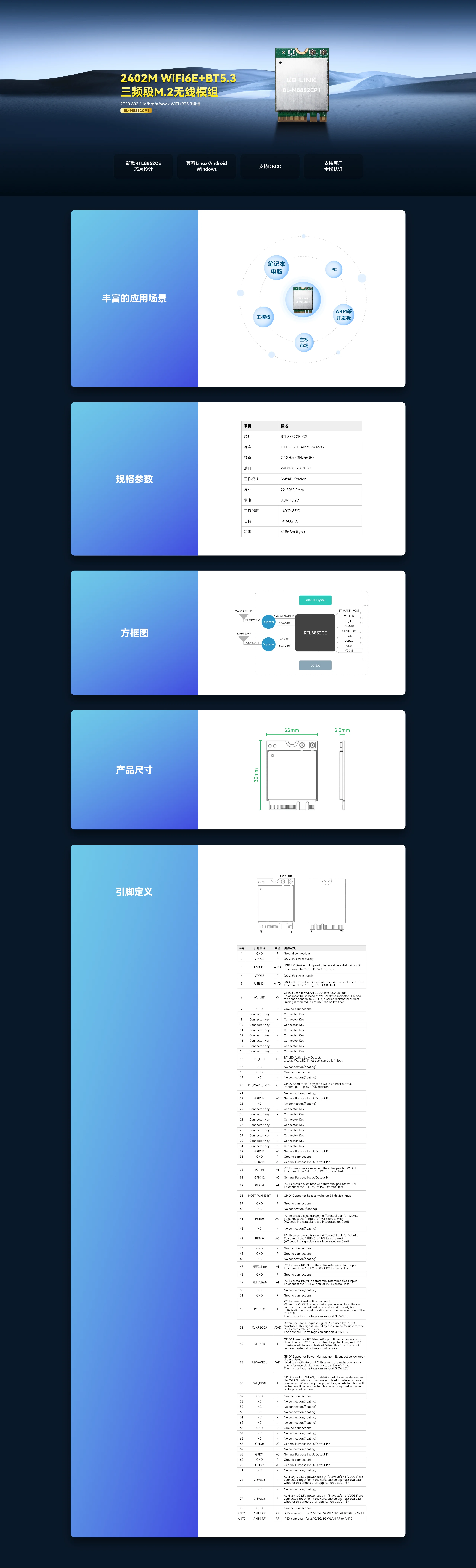 LB-LINK M8852CP1 WiFi6E+BT5.3 模组