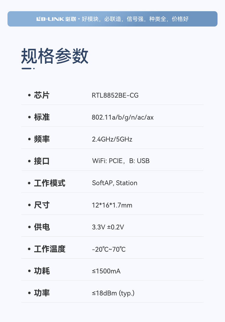 LB-LINK M8852BP6 WiFi6+B5.2 模组
